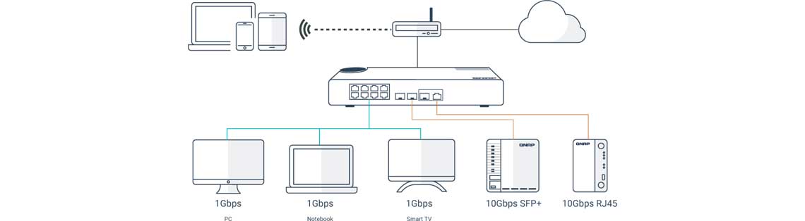 A QNAP oferece uma ampla gama de dispositivos de rede para ajudar usuários corporativos e domésticos a atualizar a infraestrutura de rede para atender à necessidade de cada vez mais largura de banda.
