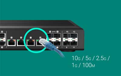 A capacidade de comutação é de 240Gb/s, garantindo o pleno potencial de cada porta. O switch também é compatível com as tecnologias 10GbE e NBASE-T para suportar até cinco velocidades (10G/5G/2,5G/1G/100M).