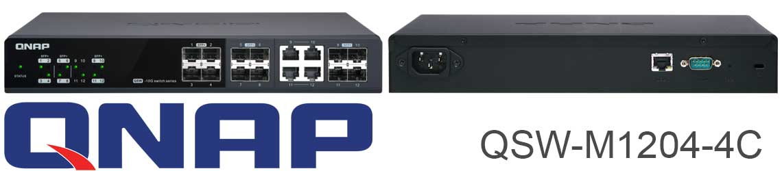 O QSW-M1204-4C Qnap é um switch gerenciável na Web de camada 2 com 12 portas, sendo oito portas SFP+ 10GbE e quatro portas combinadas SFP+/RJ45 10GbE compativeis com as tecnologias 10GbE e NBASE-T para oferecer cinco velocidades (10 G/5 G/2,5 G/1 G/100 M) com cabos existentes.