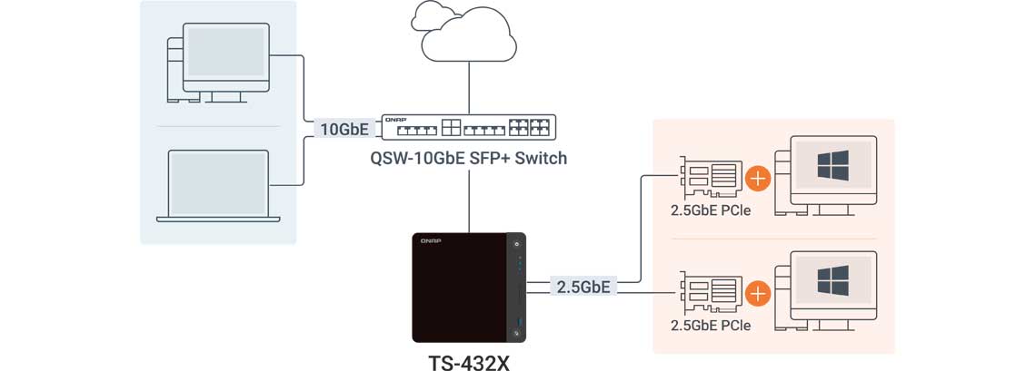 O QSW-M3216R-8S8T integra funções de largura de banda e controle de pacotes (tais como LACP, VLAN, QoS e IGMP Snooping) para impulsionar o desempenho da rede através do agrupamento de IP e gestão da largura de banda.