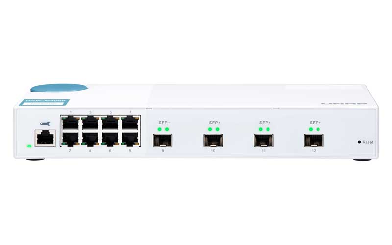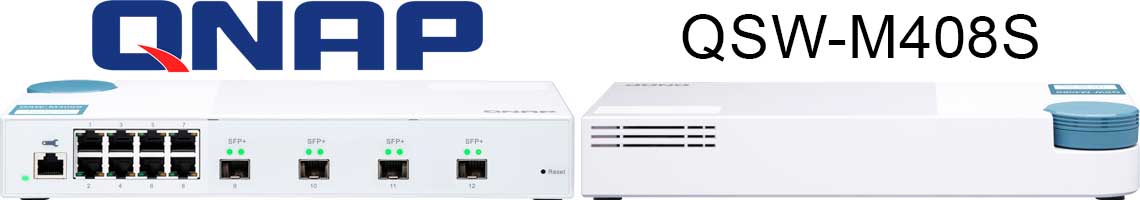 O QSW-M408S possui 12 conexões, sendo 4x portas SFP+ 10GbE e 8x Gigabit RJ45. É compatível com a comutação de camada 2 e gerenciamento de rede através de uma interface de usuário na Web, além de oferecer uma implementação flexível em ambientes de rede híbridos de alta velocidade e traz uma solução de gerenciamento de rede de nível de entrada.