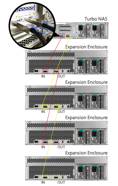O JBOD poder ser usado como armazenamento externo, fazendo backups de forma mais rápida e segura no storage NAS. A Qnap oferece opções de backups para o usuário, o RTRR (Real-Time Remote Replication) e serviço rsync, realizando-os em tempo real ou programado, processo feito através do NAS para o REXP-1600U-RP.