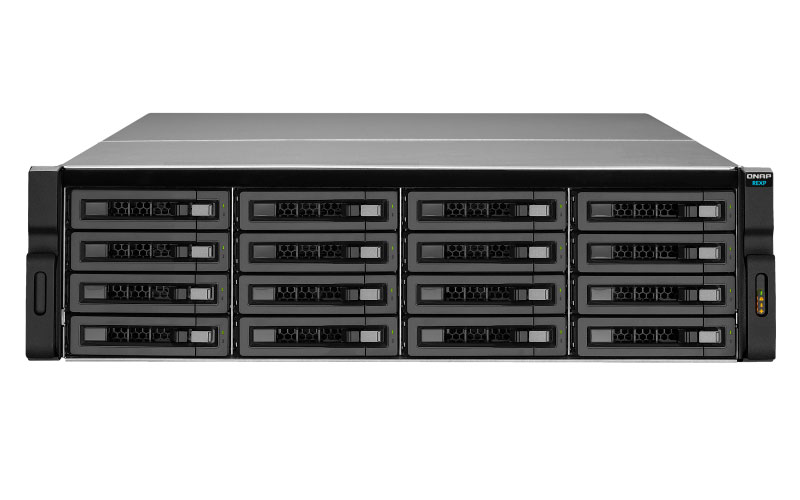 O REXP-1620U-RP da Qnap é um JBOD rackmount com fonte de alimentação redundante, com 16 baias hot-swappable projetado para aumentar a capacidade de armazenamento em um NAS, podendo integrar diversos gabinetes de expansão via cabos mini SAS de alta velocidade.