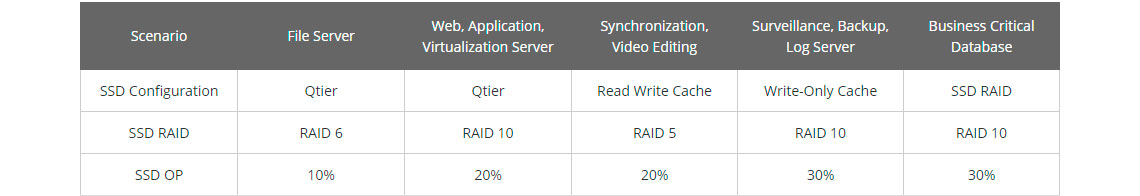 O TS-883XU-RP disponibiliza um excesso de provisionamento (OP) definido por software SSD que permite alocar espaço OP adicional (de 1% a 60%) para otimizar velocidades de gravação aleatórias e prolongar a vida útil do SSD. É possível utilizar SSDs de consumo acessível para o storage NAS, ajustar o SSD OP e atingir níveis de desempenho similares aos SSDs corporativos para elevar a experiência de backup, multimídia e aplicações de virtualização.
