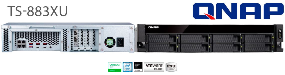 O Qnap TS-883XU oferece uma solução de alto desempenho e confiabilidade com 8 baias hot-swappable com processador Intel Xeon Quad Core, 8GB DDR4 ECC RAM, 4 portas LAN gigabit, 2 portas 10GbE SFP+ e 4 slots PCIe que possibilitam a instalação de placas adicionais para expandir as funcionalidades NAS.