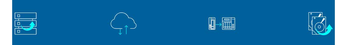 Backup em nuvem para o servidor: O Hybrid Backup Sync suporta armazenamento em nuvem para backup de dados no NAS. Para backup em armazenamento em nuvem de objetos, o VJBOD Cloud é especialmente útil para reduzir o uso da largura de banda e o tempo de backup.