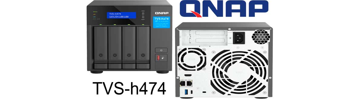 O TVS-h474 Qnap é um storage NAS 4 baias para discos SATA/SSD/NVMe, hot swappable, processador Intel Pentium 2-core, 8GB de memória DDR4, 2x conexões LAN, 2x USB, 2x slots PCIe e 1x saída HDMI.