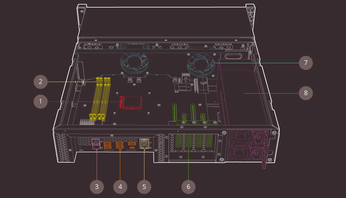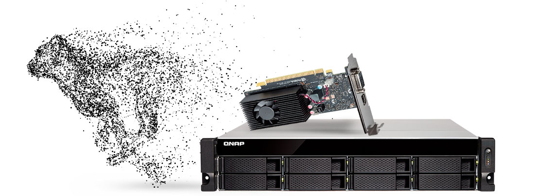Incluindo placas gráficas AMD Radeon ou NVIDIA GeForce para elevar o desempenho de aplicativos como edição de vídeo, transcodificação de vídeo 4K, processamento de imagens em QTS e desempenho de máquinas virtuais por meio de GPU passthrough.