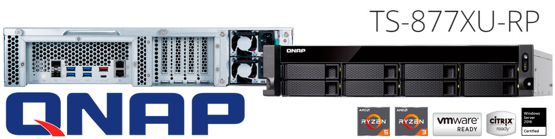 O Qnap TS-877XU-RP é um servidor com 8 baias hot-swappable para discos rígidos, procesador AMD Ryzen, fonte de alimentação redundante para garantir o máximo de tempo de atividade, duas portas LAN gigabit, duas portas 10GbE, quatro portas USB3.0 e quatro slots PCIe para instalação de placas adicionais que ampliam as funcionalidades do equipamento.