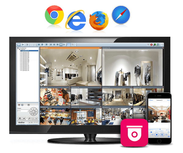 Para complementar ainda mais a vigilância o aplicativo Vmobile pode ser instalado em aparelhos iOS e Android para visualizar canais de vídeo em qualquer lugar e hora, ou até mesmo instalar o aplicativo Vcam e transformar aparelhos móveis em câmeras com gravação instantânea no TS-253B.