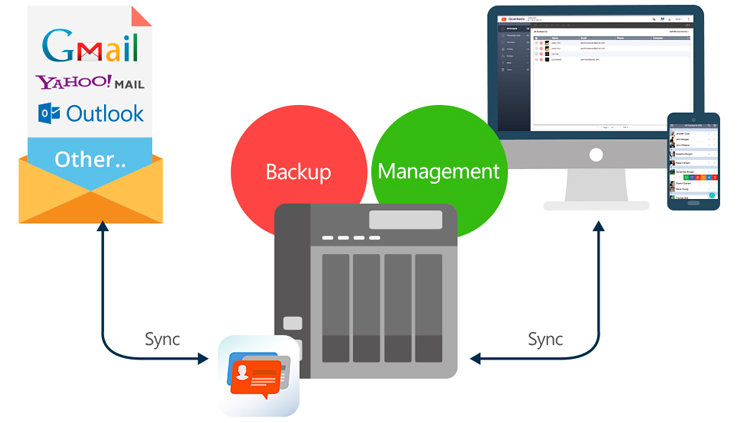 Com a combinação do aplicativo Qcontactz e os 50TB de espaço, é fácil armazenar e gerenciar informações de contatos, permitindo adicionar manualmente informações, importar várias contas Google e importação/exportação de arquivos CSV ou vCARD 3.0 de diversos usuários simultaneamente. O aplicativo identifica automaticamente os contatos mais usados, permite pesquisa inteligente e possui diversos recursos. Para segurança, o NAS 5 Bay Qnap oferece backup de snapshots, permitindo reverter as informações de contato para versões anteriores caso necessário. A Qnap também disponibiliza um aplicativo complementar para smartphones (Android e iPhone) para acesso aos contatos armazenados diretamente dos dispositivos móveis.
