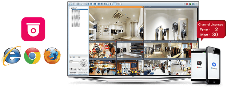 O aplicativo Vcam é uma ferramenta adicional que transforma qualquer smartphone numa filmadora de rede, gravando diretamente as imagens capturadas no Qnap TS-531X, mesmo que remotamente. O storage 50TB Qnap oferece gratuitamente 2 canais de câmera IP e suporta até 30 canais através da compra de licenças adicionais.