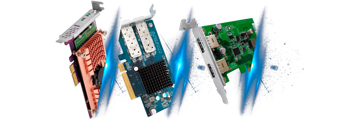 A Qnap oferece em sua linha, um conjunto completo de placas de expansão, onde o usuário poderá aproveitar o máximo do TS-432XU, incluindo as placas de expansão QM2 e NICs com portas simples e dupla.