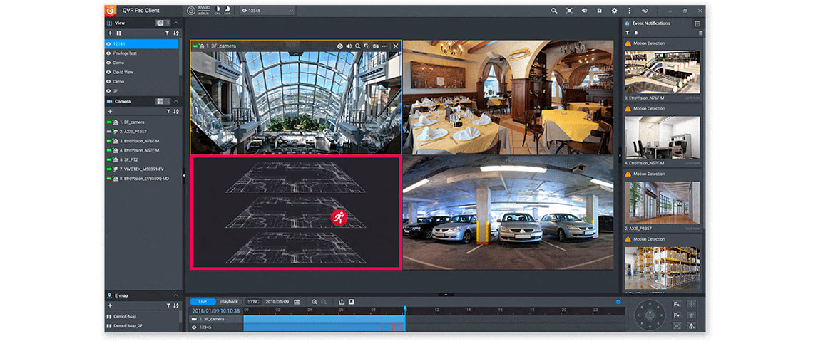 Equipado com um sistema de gerenciamento de vigilância para monitoramento em tempo real, o NAS permite a gravação de áudio e vídeo em seu sistema para proteger ambientes de trabalho.