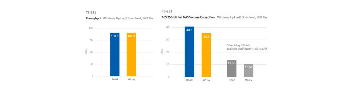 Com desempenho melhorado para criptografia, o dispositivo proporciona taxas de transferência de mais de 30MB/s com criptografia de volume AES 256 bits, agregando segurança às informações armazenadas. As baias SATA suportam HDs ou SSDs até 6Gb/s, e seus slots são hot-swappable.