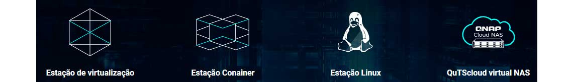 QuTScloud: O QuTScloud é um dispositivo virtual baseado no sistema operacional QTS. As empresas podem iniciar rapidamente o QuTScloud em programas, incluindo Linux KVM, Microsoft Hyper-V e VMware ESXi para adquirir recursos avançados, sem exigir hardwares adicionais.