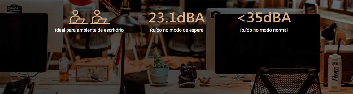 O servidor possui um cooler de CPU e duas ventoinhas para fornecer resfriamento eficaz. Com um design leve e elegante, o sistema é perfeito para ambientes de trabalho modernos.