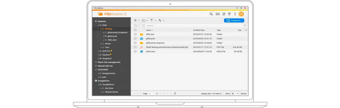 Tecnologia QuDedup: O Hybrid Backup Sync elimina dados redundantes na origem e, em seguida, faz backup dos dados desduplicados, ajudando a economizar tempo e custos de armazenamento, ao mesmo tempo em que fornece backups eficientes.