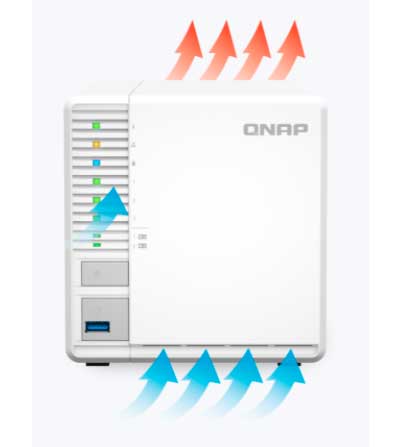 O TS-364 Qnap apresenta um visual moderno com um fluxo de ar eficaz que fornece resfriamento, garantindo um desempenho suave mesmo sob as cargas mais pesadas.