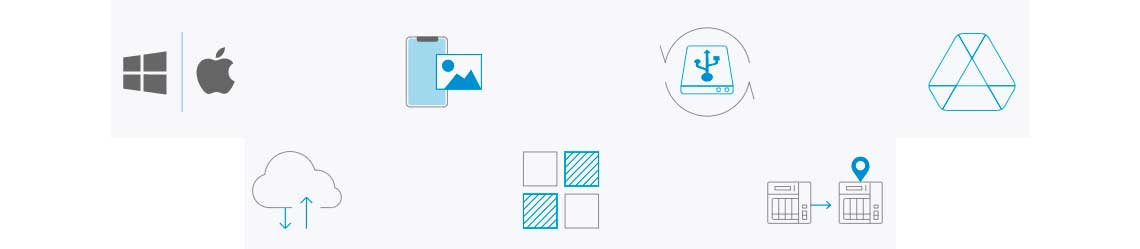 Tecnologia QuDedup: O Hybrid Backup Sync elimina dados redundantes na origem e, em seguida, faz backup dos dados desduplicados, ajudando a economizar tempo e custos de armazenamento, ao mesmo tempo que fornece backups multi-versões eficientes.