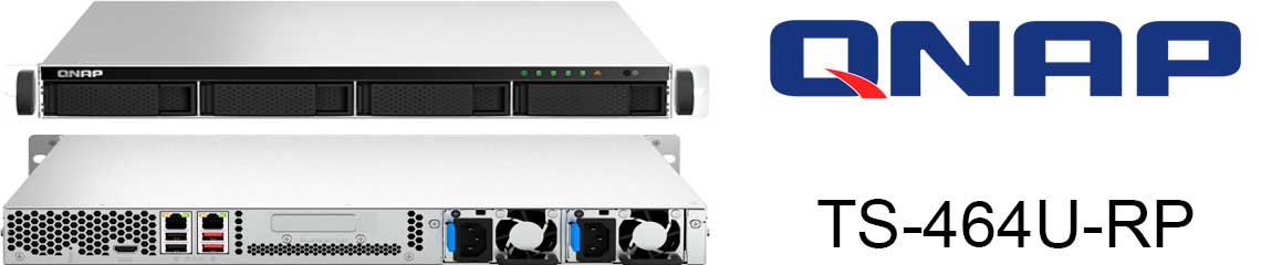 O TS-464U-RP é um NAS 4 baias para discos SATA, hot swappable, fontes redundantes, equipado cor um processador Intel Celeron Quad-core, 2x portas RJ45 de 2,5GbE e Port Trunking para largura de banda, além de uma saída HDMI 4K, que permite a exibição de multimídia e máquina virtual.