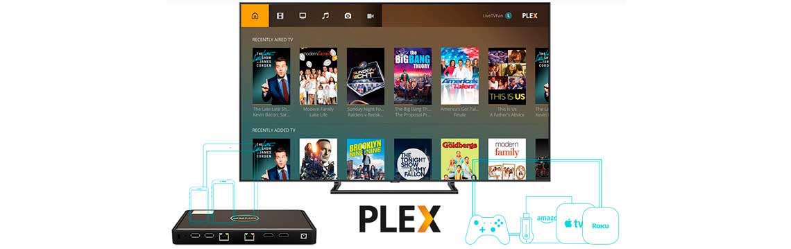 Ao instalar o Plex Media Server a partir do QTS App Center, pode transmitir dados multimídia armazenados no TBS-464 para celulares e dispositivos de transmissão em fluxo de multimédia (incluindo DLNA, Roku, Amazon Fire TV e Google Chromecast).