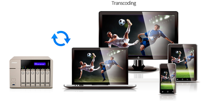 O Qnap TVS-663 permite exibir simultaneamente diferentes vídeos em vários dispositivos graças a transcodificação acelerada por hardware, sem a necessidade da conversão do arquivo original e sem delay para que está assistindo.