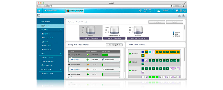 Com recursos como expansão de capacidade de volume on-demand, proteção de grupo de armazenamento, volume incremental de provisionamento com reciclagem de espaço e bloqueio de nível iSCSI LUN, o TVS-663 Qnap protege seus dados de forma definitiva.