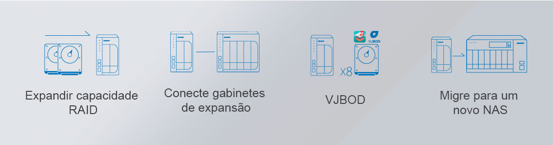 Utilizar um VJBOD (Virtual JBOD) para expandir sua capacidade de armazenamento usando o armazenamento não utilizado de outro QNAP NAS;