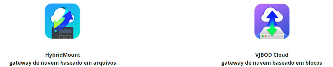 O gateway baseado em bloco VJBOD Cloud suporta a montagem de armazenamento de objeto em nuvem como um volume baseado em bloco ou LUN em um NAS. A transmissão de dados baseada em bloco carrega dados aleatórios e arquivos grandes para a nuvem em blocos e apenas transmite volume baseado em bloco ou alterações de LUN.