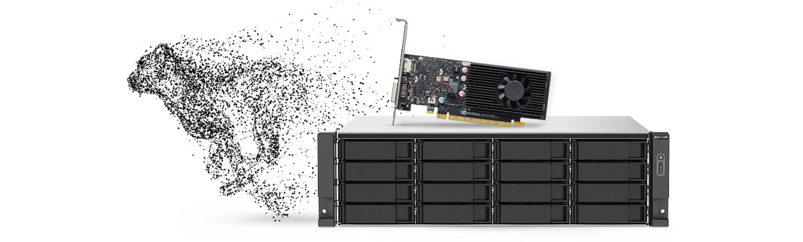 A instalação de uma placa gráfica incrementam o desempenho de aplicativos para edição de vídeo, transcodificação de vídeo 4K, processamento de imagem em QTS e o desempenho de máquinas virtuais por meio de passagem de GPU.