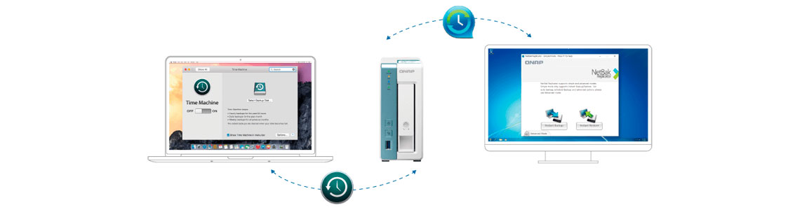O NAS oferece uma solução simples para backup/restauração de notebooks e desktops. O usuário pode usar o Qnap NetBak Replicator para fazer backup de arquivos de computadores Windows, incluindo o arquivo de e-mails do Outlook.