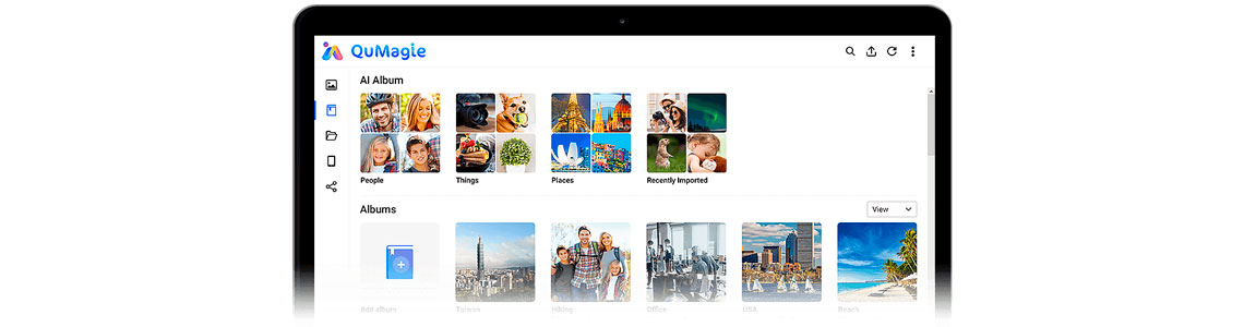 Integrando um algoritmo de aprendizagem de IA, o aplicativo QuMagie possui um algoritmo de aprendizagem de IA que permite reconhecimento facial, identificação de objetos e marcação geográfica das fotos no TS-131K. Fotos semelhantes são agrupadas nos Álbuns de IA (ou seja, pessoas, objetos e lugares). Outros recursos úteis incluem a rolagem em linha do tempo integrada, capas de pasta personalizáveis e uma ferramenta de pesquisa, oferecendo a solução ideal de gerenciamento e compartilhamento de fotos.