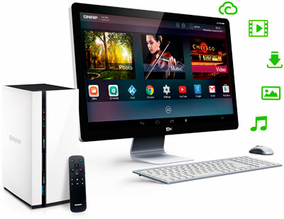 Com o Qfile é possível carregar fotos e assistir em monitores HDMI via Android. Da mesma forma, arquivos baixados via sistema Android podem ser gerenciados e compartilhados por meio do QTS.