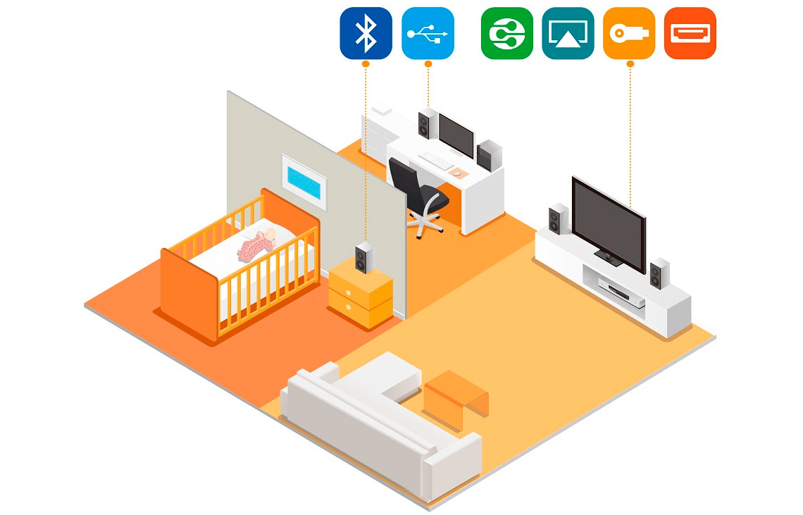 O TAS-268 funciona integrado com home theaters e outros equipamentos como smartTVs, players de áudio doméstico, consoles de games sem nenhum problema de compatibilidade.