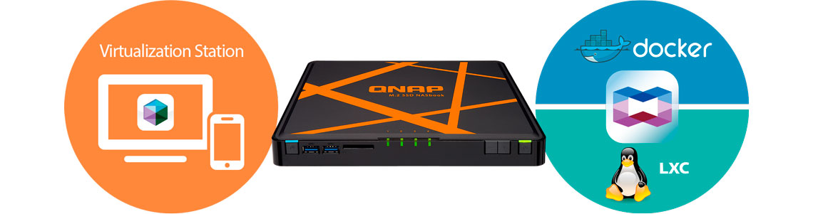 O TBS-453A oferece uma tecnologia de containers para a virtualização de servidores com o Qnap Container Station. As tecnologias de virtualização LXC e Docker, e permitem operar inúmeros sistemas isolados do Linux, além de baixar aplicativos pelo Dockerr Hub Registry. Container Station suporta o aplicativo Online Document, que permite visualizar, editar e armazenar dados em qualquer lugar do NASbook, incluindo documentos Office e imagens.