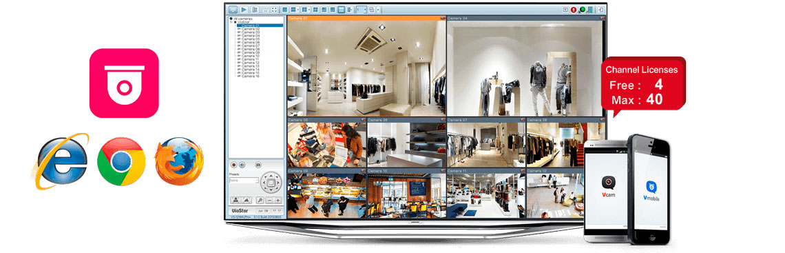 Além de oferecer monitorização em tempo real, gravação de vídeo e áudio, com opções de personalização. A instalação do Vmobile nos dispositivos móveis iOS ou Android gere canais de imagens em qualquer local e momento.
