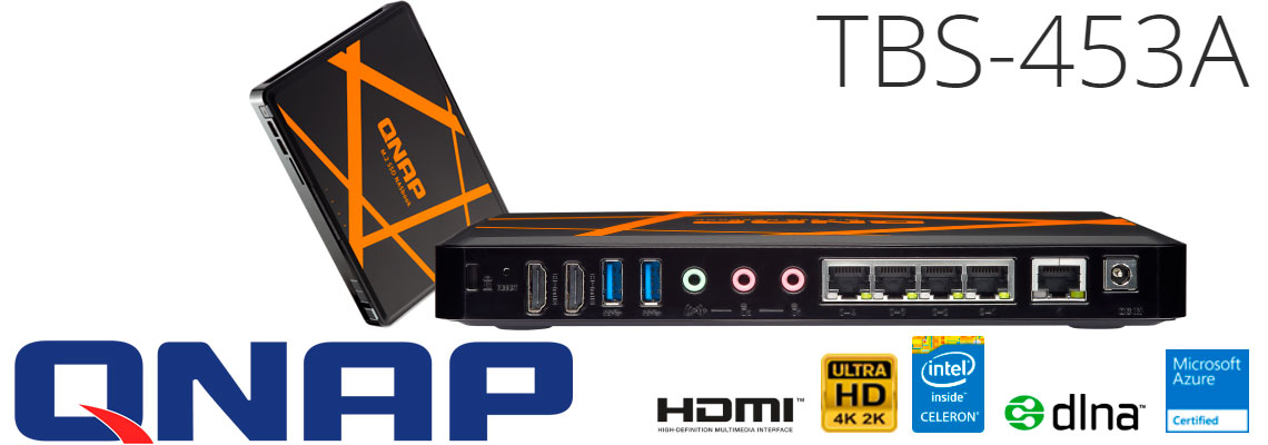 O TBS-453A é compacto, silencioso e versátil, além de disponibilizar 4 baias para a instalação de SSD M.2 e criptografia AES-NI. Equipado com o processador Intel Celeron N3150 quad-core 1.6Ghz, 4GB de RAM, 5 portas LAN Gigabit e 2 saídas HDMI.