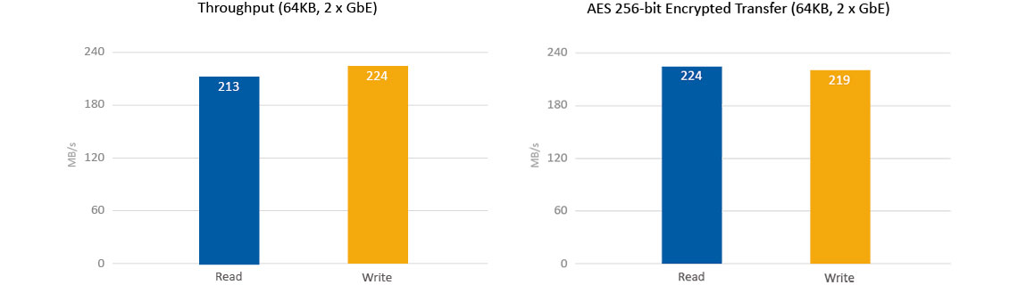O Qnap NASbook oferece criptografia acelerada por hardware Intel AES-NI de 256 bits, para volumes completos NAS. As portas LAN fornecem até 109MB/s de rendimento independente.