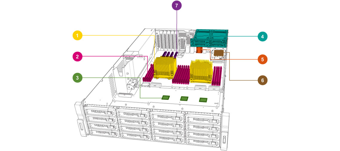 4 slots PCIe: suporta placas de rede de 40GbE/25GbE/10GbE, placas gráficas, cartões QM2, adaptadores Fibre Channel e SAS HBA de 12Gb/s para maior potencial de aplicação.