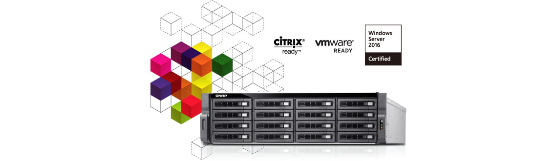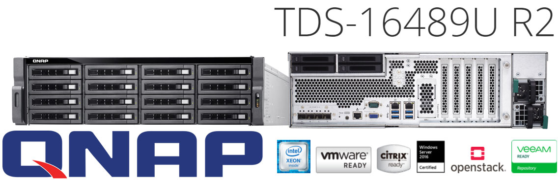 O TDS-16489U R2 disponibiliza aplicativos de virtualização, como o VMware, Citrix, Microsoft Hyper-V e Windows Server 2016. O VMware VAAI e o Microsoft ODX também são suportados para aumentar o desempenho descarregado para o servidor ESXi e o Hyper-V e o Plug-in Qnap vSphere Client e o provedor Qnap SMI-S.