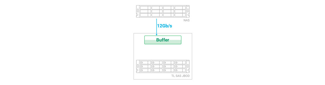 O TL-R1220Sep-RP pode usar drives de 12 Gb/s ou 6 Gb/s. O storage NAS irá transferir dados para o TL-R1220Sep-RP a 12 Gb/s, permitindo um benefício de transmissão SAS de alta velocidade de 12 Gb/s com 6 Gb existentes/s infraestrutura.
