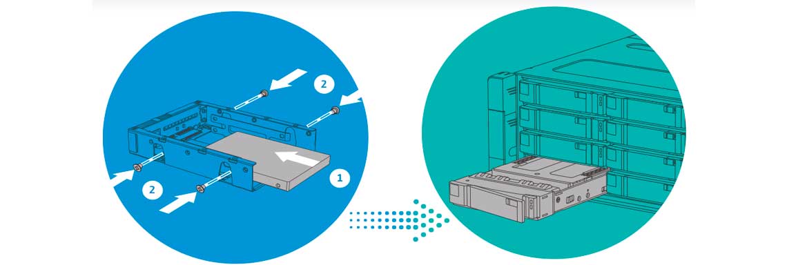 O adaptador QDA-SA2 permite o uso de uma unidade SATA de 6 Gb / s em um compartimento de unidade SAS de 3,5 polegadas - oferecendo a capacidade de expandir a capacidade de armazenamento usando unidades SATA econômicas.