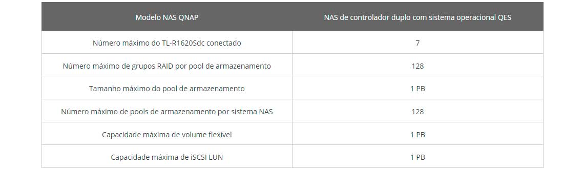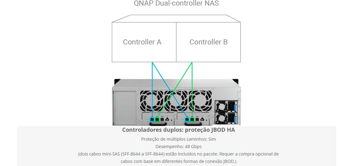 O NAS Qnap requer QES 2.1.1 (ou posterior) e portas Mini-SAS HD (SAS 12 Gb / s SFF-8644), Mini-SAS (SAS 6 Gb / s SFF-8088) ou uma Placa de expansão SAS baseada em PCIe.