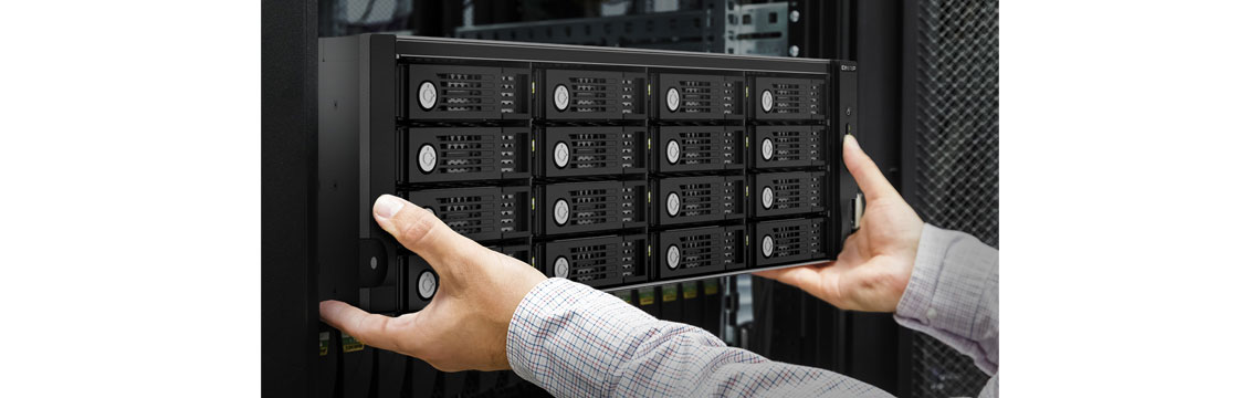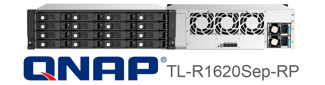 O TL-R1620Sep-RP é um gabinete de expansão de armazenamento SAS 12 Gb/s, com 16 baias hot-swappable, sendo projetado para expandir o espaço de armazenamento de NAS com QTS ou QuTS hero.