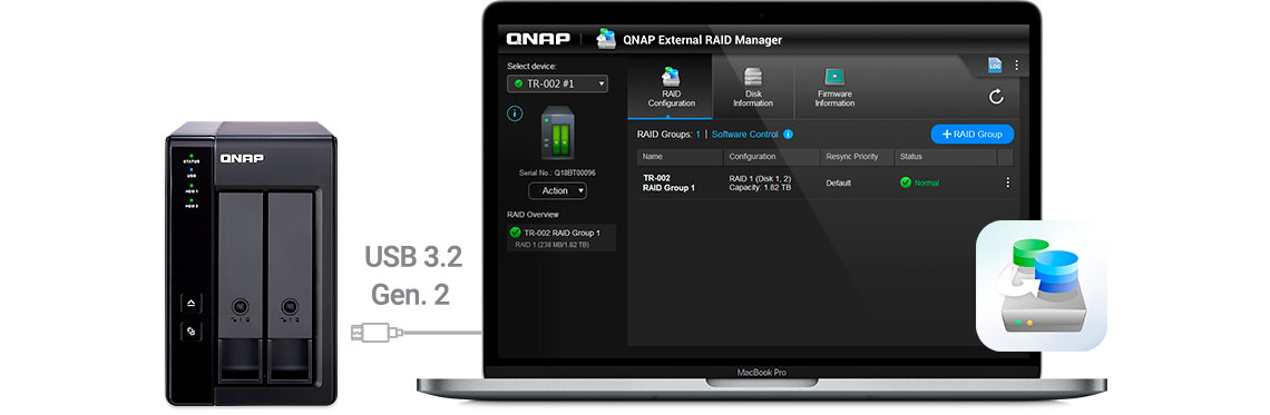 O Qnap External RAID Manager é um utilitário para usuários de Windows e MAC utilizado para configurar, monitorar e visualizar o status do dispositivo TR-002, obtendo assim rapidamente o status de desempenho e integridade do RAID.