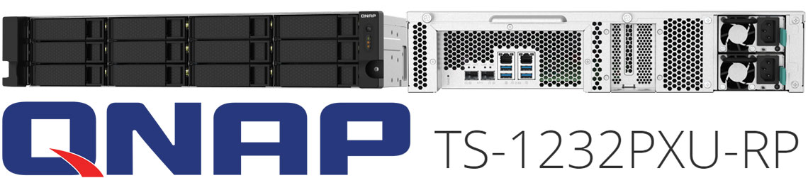 O TS-1232PXU-RP é um NAS hot swappable oferece 12 baias para discos SATA de 2,5 e 3,5 polegadas e fontes redundantes. Equipado o processador Annapurna Labs Alpine AL-324 ARM Cortex-A57 quad-core de 1,7 GHz, 4GB de RAM DDR4. Além de oferecer portas de rede SFP+ 10GbE e 2,5GbE, e com uma alta largura de banda de rede para facilitar a colaboração e o acesso a arquivos e dados.
