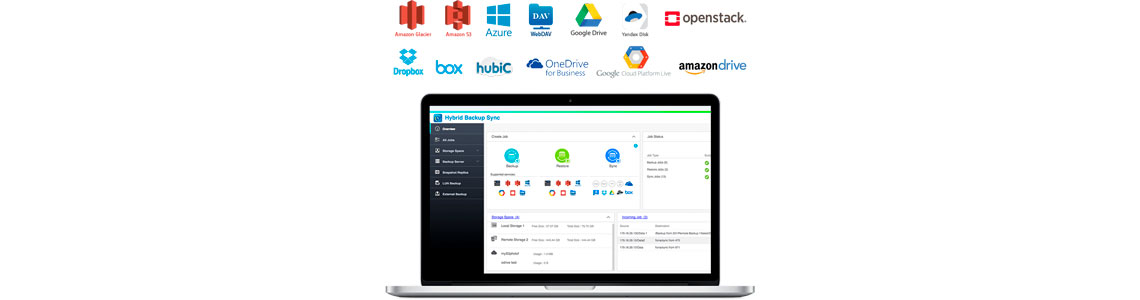 O Hybrid Backup Sync também permite sincronização de uma ou duas vias para serviços de nuvem, suportando protocolos como o RTRR, rsync, FTP e SMB.