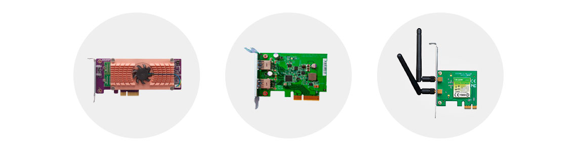 Com um slot PCIe livre para expansão, o equipamento aceita placa de expansão com memórias padrão M.2 SSD cache e conectividade 10GbE, placa com conexão wireless para proporcionar acesso wifi, uma placa com portas USB 3.1 e conexão LAN 10GbE para maior performance em sistemas de backup externos.