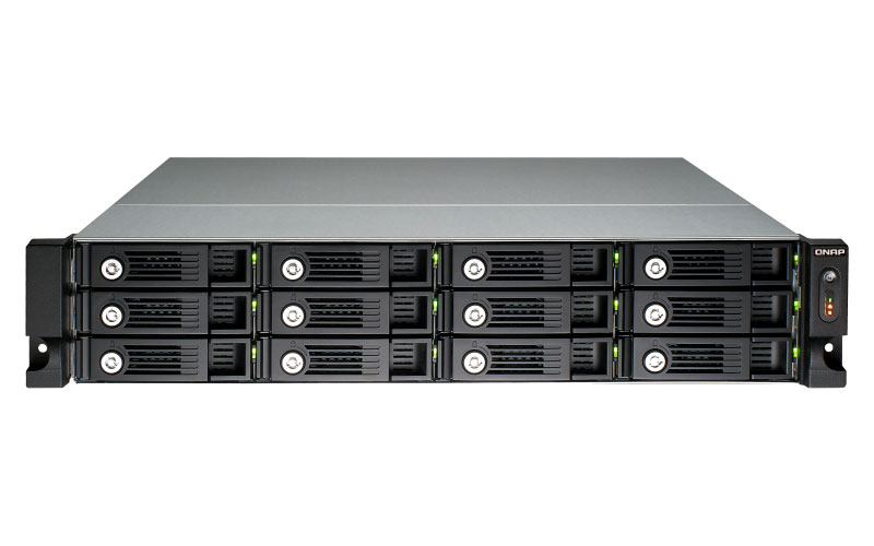 O TS-1253U é um NAS 12 Bay para Hard disks SATA 6Gb/s, processador Intel Celeron Quad-Core 2.0GHz, 4GB RAM DDR3L (expansível até 8GB), 4 portas LAN Gigabit e saída HDMI, além de permitir aceleração através de cache SSD.